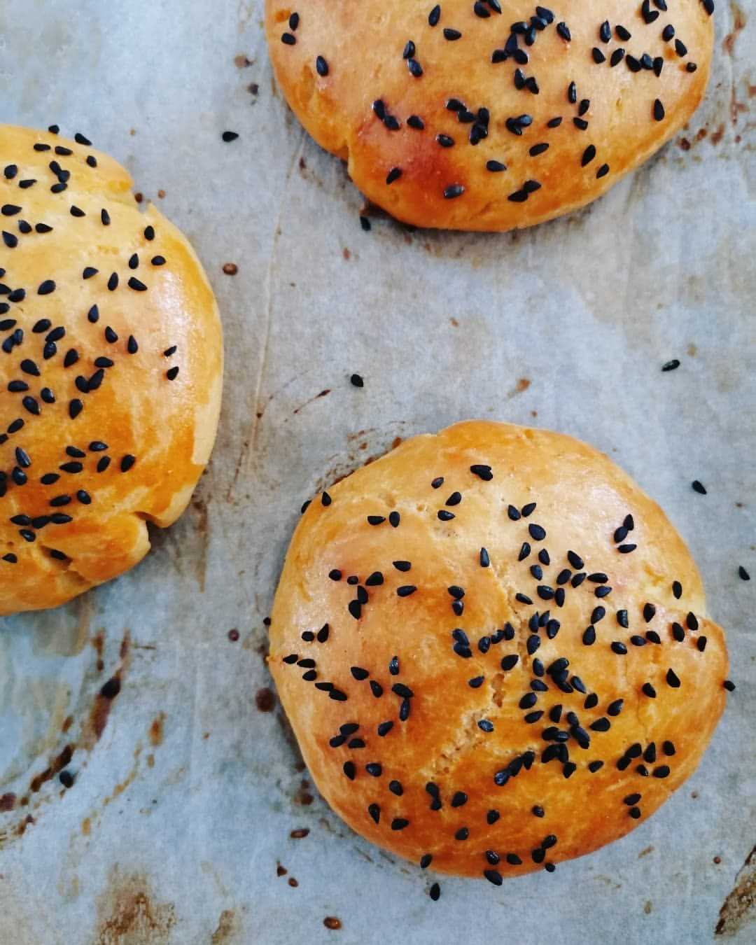 - Застилаем противень пергаментной бумагой и выкладываем на него пирожки.