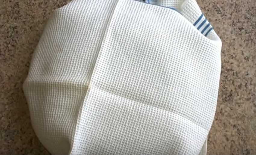- Затем вновь ставим тесто для активации дрожжей на час в не холодное место, предварительно накрыв его полотенцем.