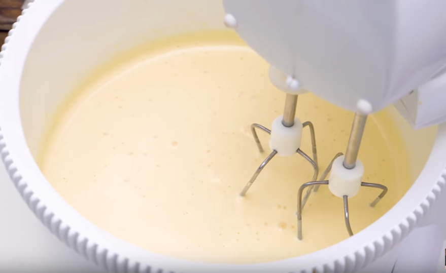 Эту массу важно не перебить, иначе она станет белковым кремом. Взбивать надо потихоньку, до полного растворения сахара и появления небольшого количества пены на поверхности.