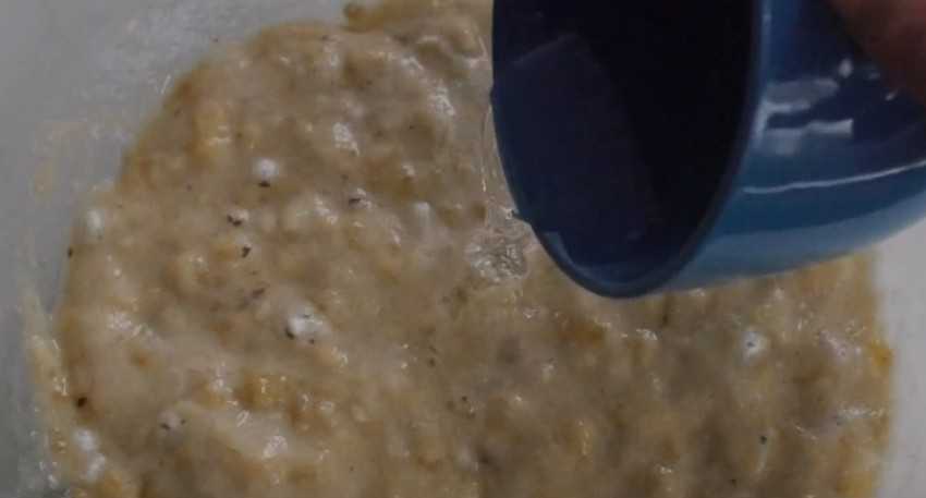 3. Муку введите в два приема. По консистенции тесто получится как на оладьи.