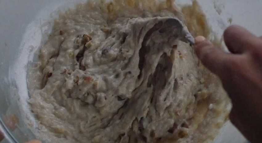 Соединяем полученную массу с половиной орехов и перемешиваем.