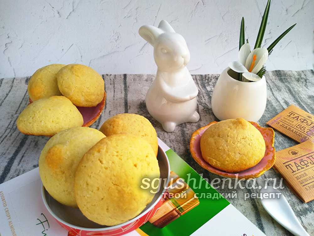 4. Испеченные изделия имеют однотонную корочку приятного золотисто-янтарного оттенка, поэтому не нуждаются в посыпке. Сахарная пудра сделает их приторными, маковая крошка просто соскользнет с гладкой выпуклой поверхности, как и кокосовая стружка.