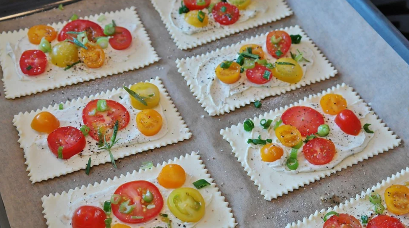 Важно! Технология изготовления такая же, как и при работе с дрожжевым тестом. Достаточно раскатать лист до нужных размеров, сформировать аккуратные бортики, а лишние участки можно удалить ножом