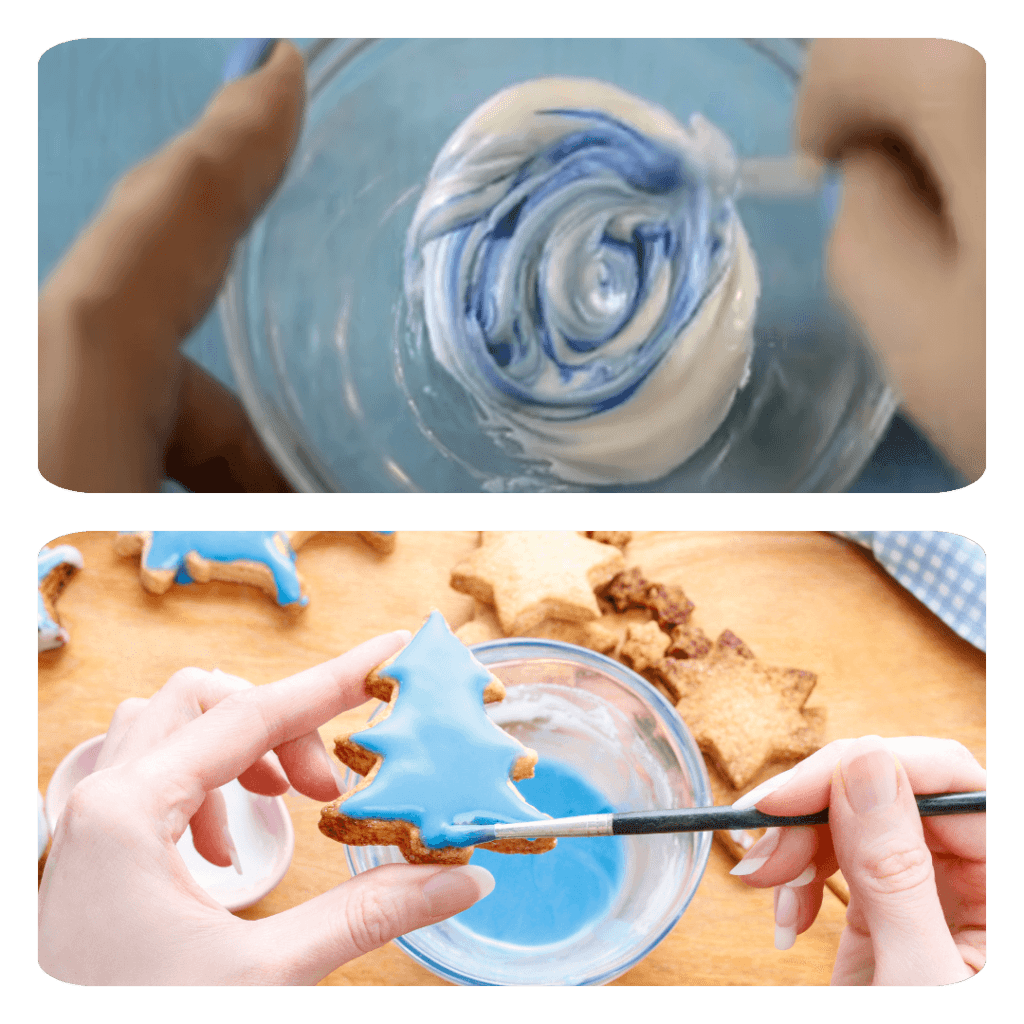 Осторожно перемешать до образования однородной густой массы. В готовую глазурь для рисования добавить красители