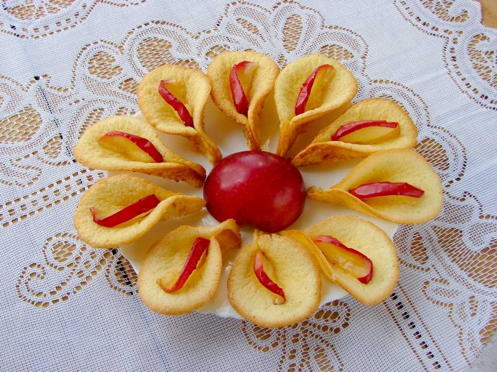 Выпекают лепестки буквально несколько минут, чтобы они стали румяными. В горячем виде заворачивают края, как лепестки. Если тесто остынет, то оно будет ломаться, так что действовать нужно быстро.