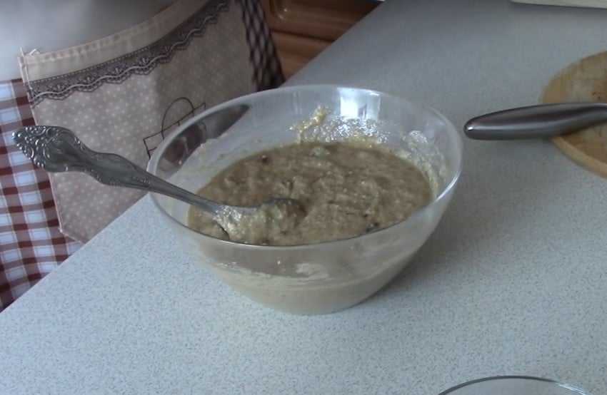 Кефир в этом рецепте используют только комнатной температуры. Тогда хлопья точно разбухнут, и тесто получится однородным. На пятнадцать минут следует залить этим ингредиентом хлопья.