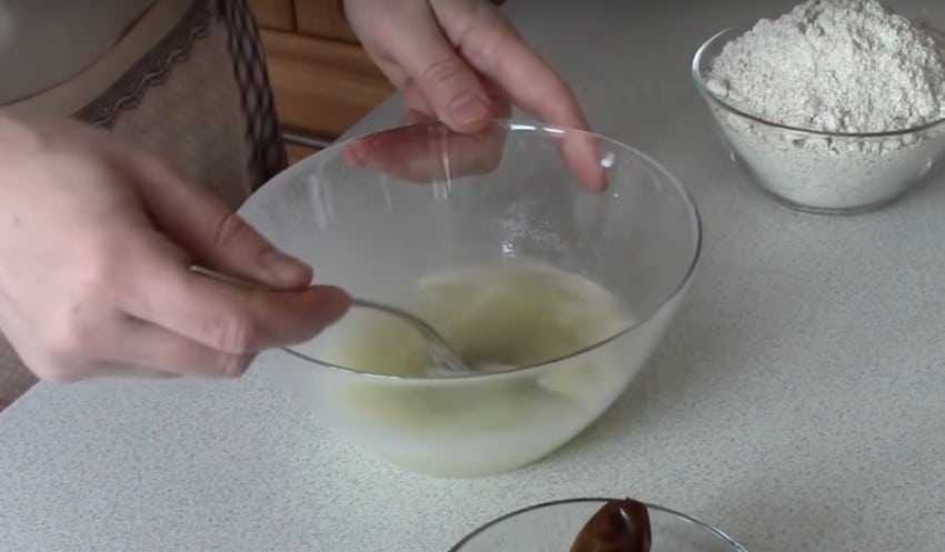 В это время можно смешать мед, кокосовую стружку и ванилин. Также стоит отделить белок одного яйца. Желток в этом рецепте овсяных хлопьев на кефире не используется.