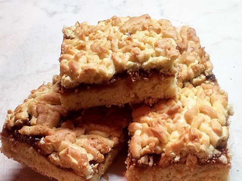 Классический рецепт печенья, приготовленного из рассыпчатого песочного теста с начинкой из смородинного или сливового варенья. Некоторые хозяюшки сомневаются, стоит ли его готовить, не представляют, как тесто можно натереть на терке. На самом деле, тесто для затвердевания помещается в морозильную камеру, а его структура такая, что проблем с измельчением не возникает. Зато со стола такое печень улетает в первую очередь, даже при наличии «магазинных» представителей по соседству.