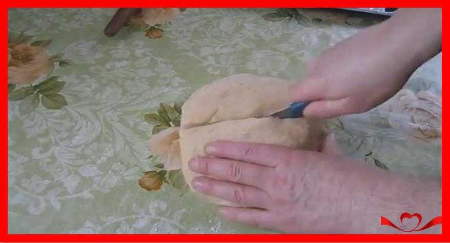 7. Разделите тесто на 2 неровные части. Я всегда режу тесто на глаз.