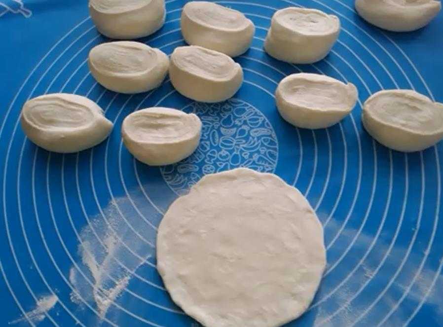 Посыпать стол мукой и раскатать кусочки в тонкие блины.