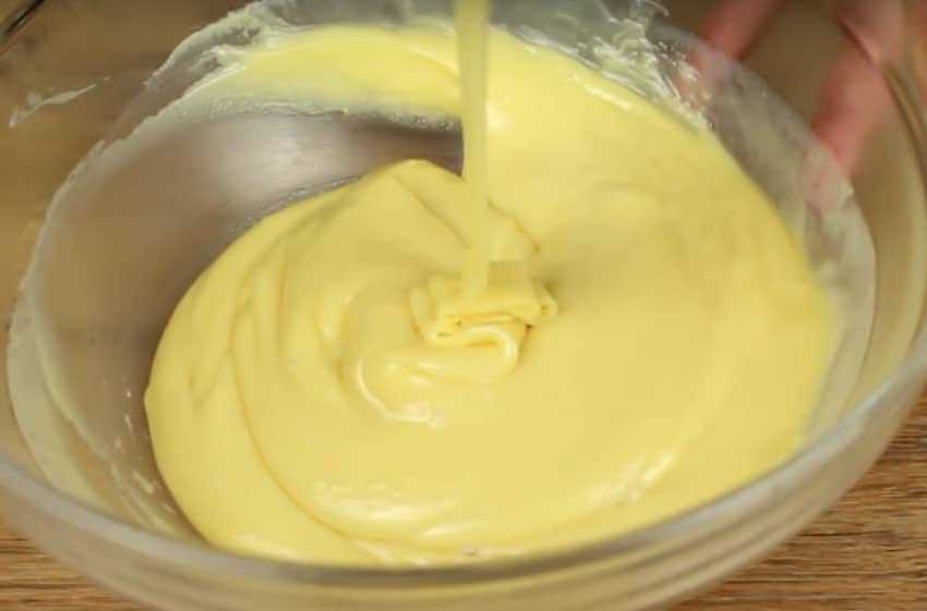 - После того, как масса остыла – вливают яичный желток и быстро перемешивают содержимое.