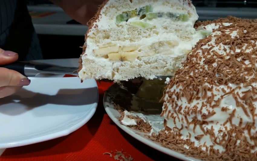 Вкуснейший бисквитный торт бананами готов, наслаждайтесь его непревзойденным вкусом.