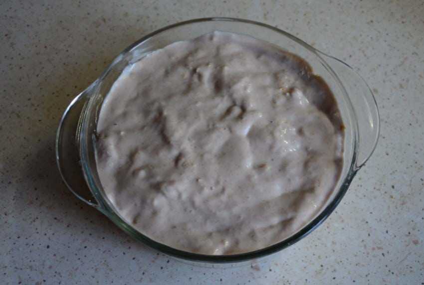 Наливаем в подходящую мисочку 50 миллилитров молока, добавляем по столовой ложке сахара и качественного порошка какао. Перемешиваем и ставим в микроволновку на 30 секунд на максимальную мощность. Через полминуты проверяем, как ведет себя глазурь. Дайте торту пропитаться минимум 4 часа, но лучше всего оставить на ночь на столе, а не в холодильнике, так как в холодильнике крем застынет и коржи останутся твердыми.