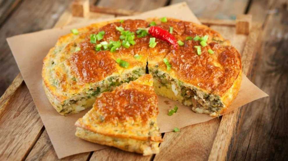 Вкусный пирог на сметане и майонезе с жареной капустой и картошкой