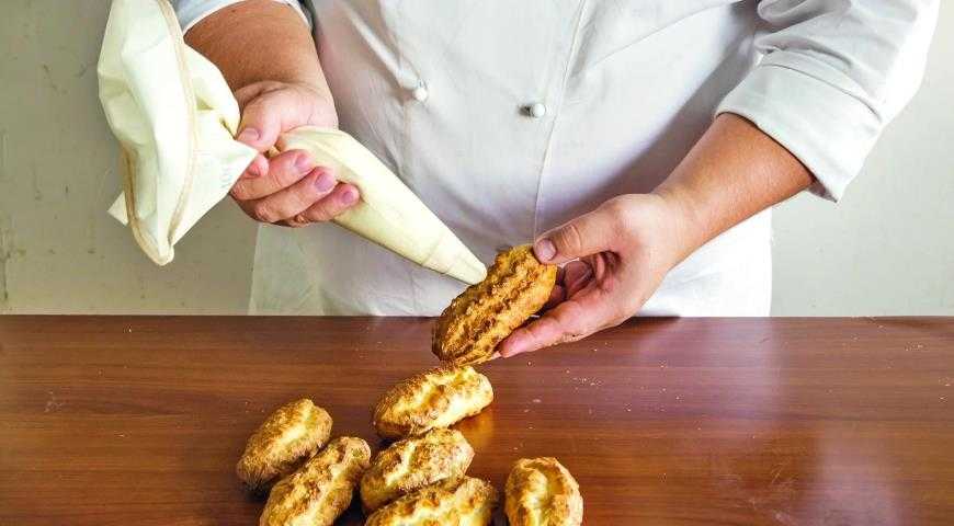 Это легкое, питательное, воздушное пирожное, которое буквально тает во рту. Сделать его могут даже начинающие кулинары, а выбрать начинку для такого десерта можно по собственному вкусу – от сливок или сгущенки до различных заварных кремов или негустой шоколадной пасты.