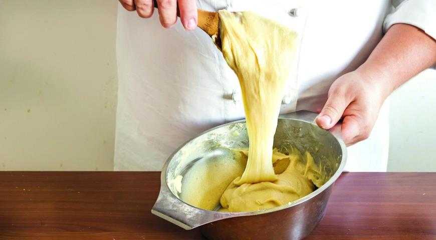 Секрет 7. Консистенция теста очень важна — оно должно быть не густым и не жидким. В идеале заварное тесто тянется за ложкой, но при этом сохраняет форму, не расползаясь на противне.