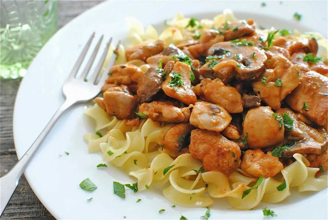 В традиционном варианте бефстроганов готовится из филе говядины. Но сегодня мы рассмотрим 5 самых выигрышных и вкусных вариантов исполнения этого блюда из курицы. Бефстроганов в таком случае получается особенно нежным и вкусным, а процесс и время приготовления значительно сокращается. Поджаренные с луком и овощами кусочки мяса получаются нежными и мягкими. А особый аромат и вкус придаст специальный фирменный соус.