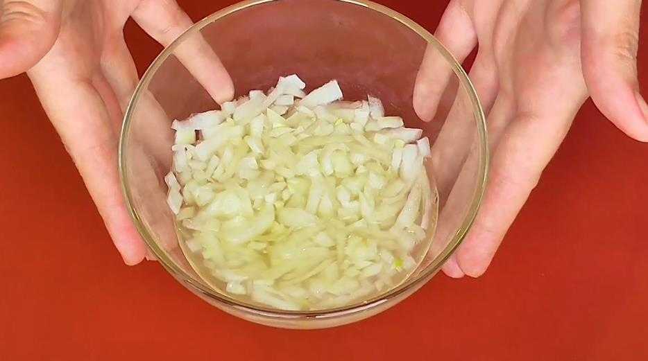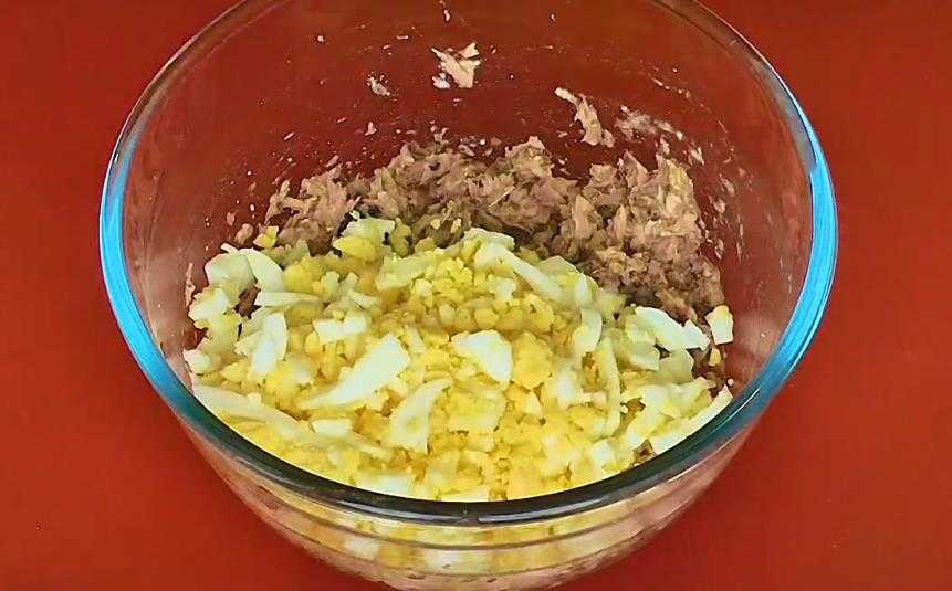 - Сыр и ветчину нарезают некрупными кубиками (можно кружочками, но это займет больше времени).
