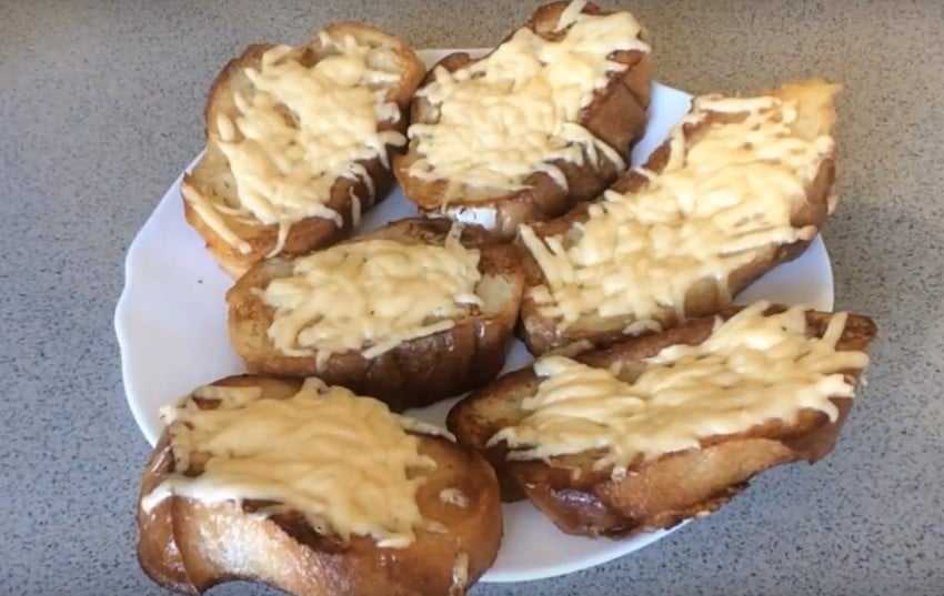 Чтобы усовершенствовать вкус закуски, стоит посыпать румяные хлебные кусочки измельченным сыром. Подойдет любой твердый молочный продукт (в том числе и острый).