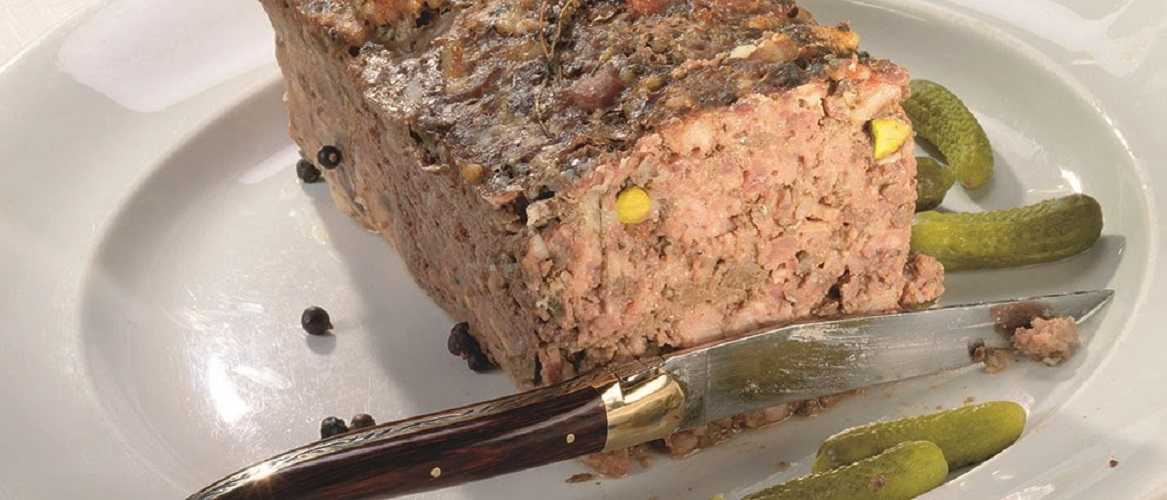Приготовление паштета начинается с измельчения продуктов в мясорубке. Далее, стоит соединить фарш из печени и мяса с обжаренным на сале луком и чесноком. Приправить, добавить водку и запекать около часа при 220 градусах.