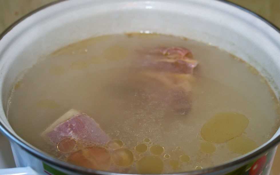 - Наливаем в кастрюлю оставшийся от риса отвар. Он должен покрывать содержимое с верхом, на 2-3 см. Во время кипения доливаем немного воды, если она начинает выкипать.