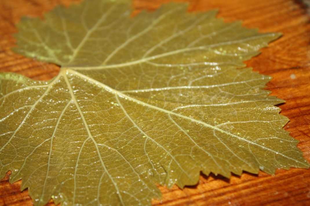 - Листья винограда выложить на рабочий стол вверх шершавой стороной.
