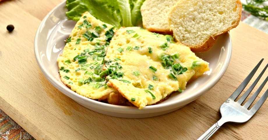 - Когда омлет будет готов, разделите его на порции и подайте на стол.