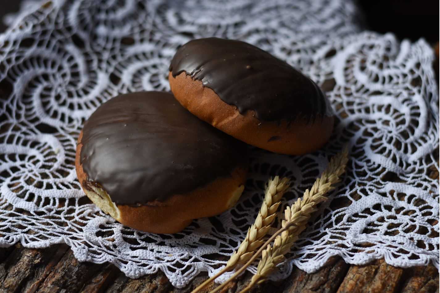 Сдобные, мягкие булочки, политые темно-коричневой глазурью, вкусные даже без наполнения.