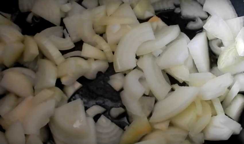 - Разогрев в сковородке масло, положите в него лук и слегка обжарьте.