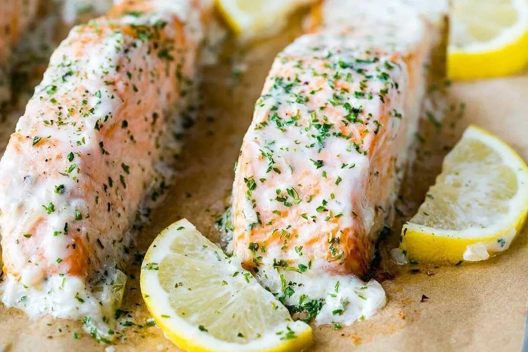 - Намаринуйте куски рыбы в смеси лимонного сока, соли и специй.