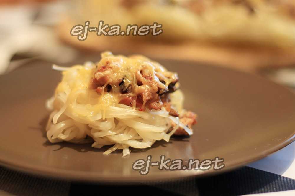 Гнезда из макарон с фаршем в духовке: пошаговый рецепт