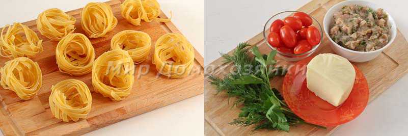 Макаронные гнезда с фаршем — пошаговый рецепт