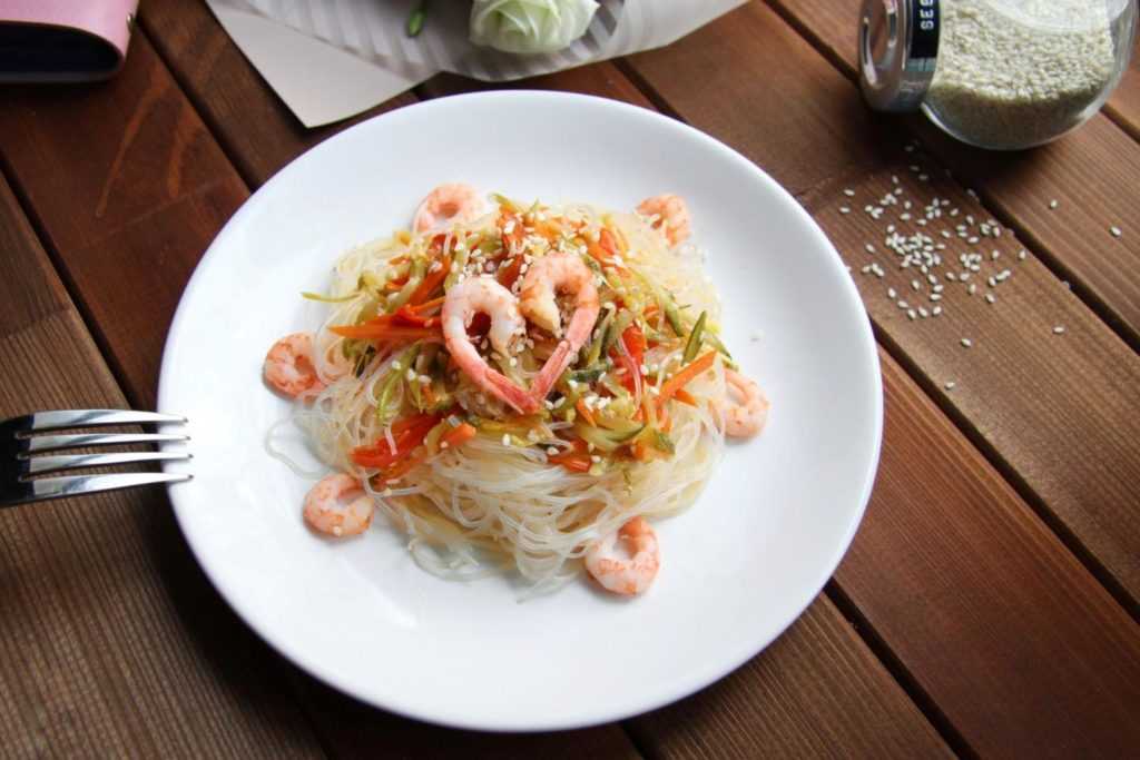 Если вам хочется вкусного оригинального салата, но еще не решили какого именно, то обратите внимание на великолепное сочетание лапши фунчоза с креветками и огурцами в этом простом рецепте