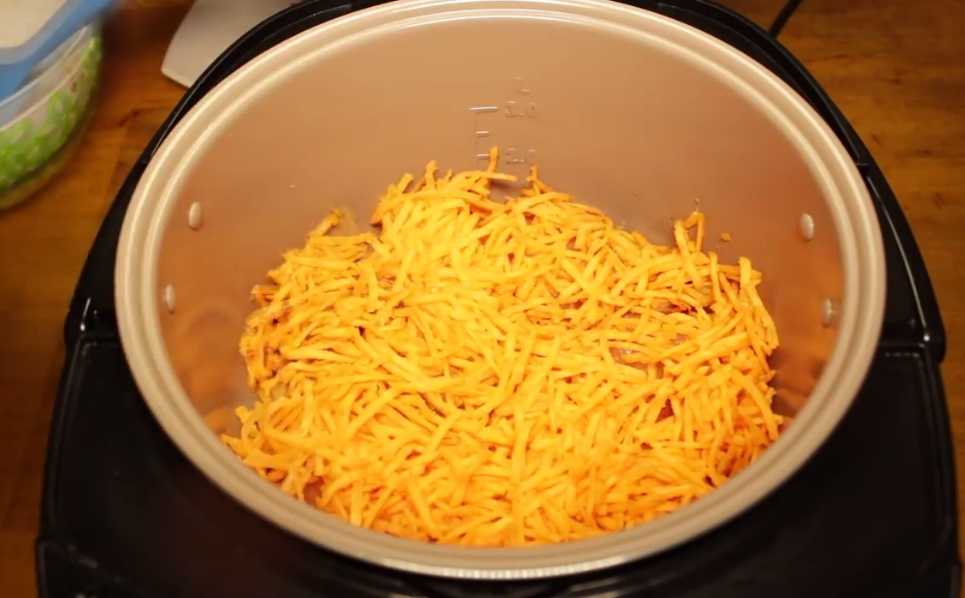 - Чистим морковку, трем на терке, кладем в мультиварку, снова перемешиваем. Можно добавить немного водички, если говядина суховатая.