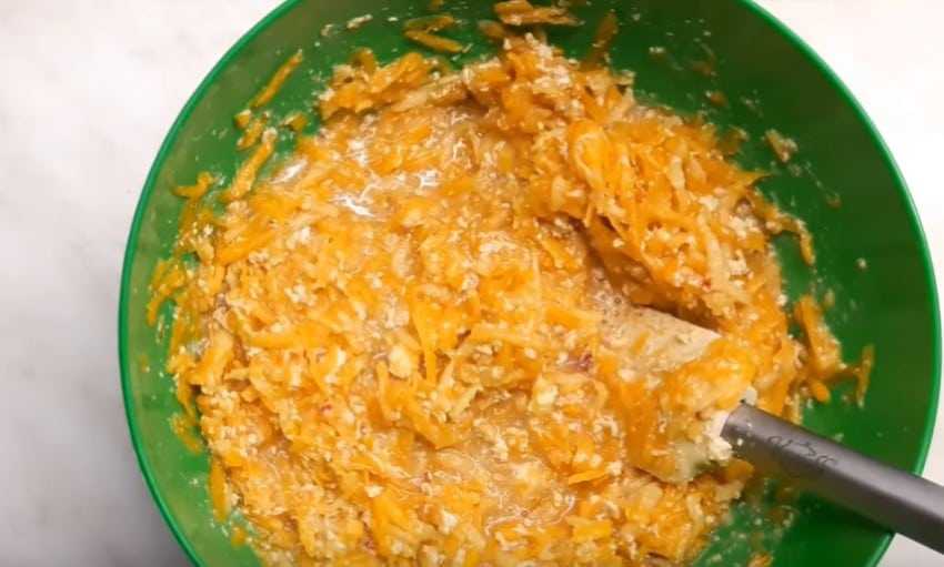 4. Всыпьте в массу тёртые ингредиенты, тщательно перемешайте.