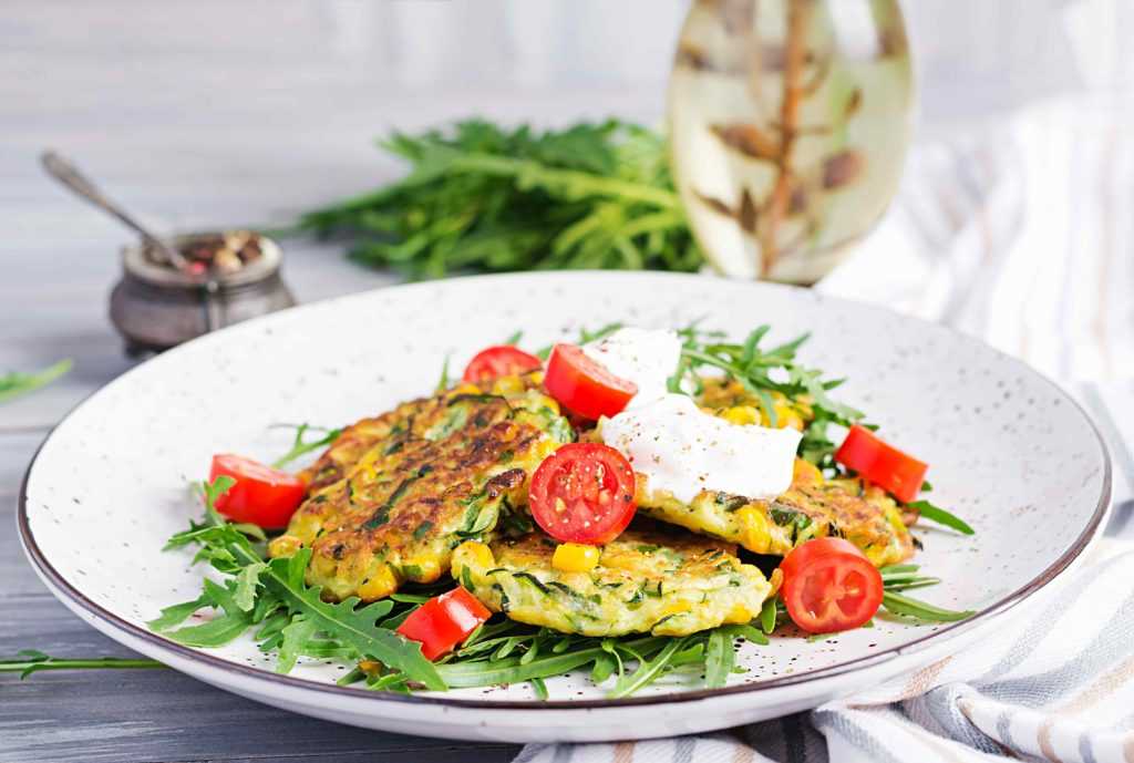 Нежные кабачковые оладьи с овощами