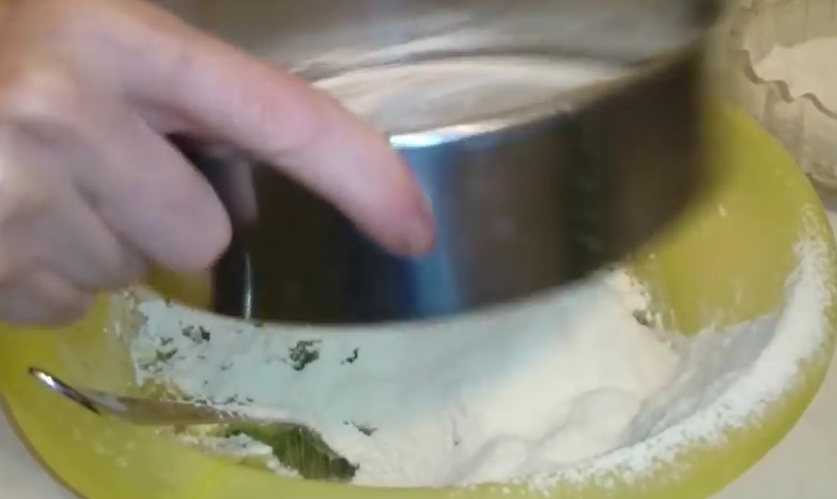 4. Пришла очередь добавить муку. Для обогащения кислородом просеиваем ее через сито и постепенно всыпаем в тесто.