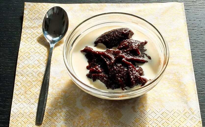 Чернослив плохо сочетается с разными заправками. Поэтому мы предложили использовать простую воду. Если вы все же хотите дополнить блюдо соусом, растворите в кипятке немного томатной пасты. Или добавьте процеженный мясной (свиной, говяжий или куриный) бульон.