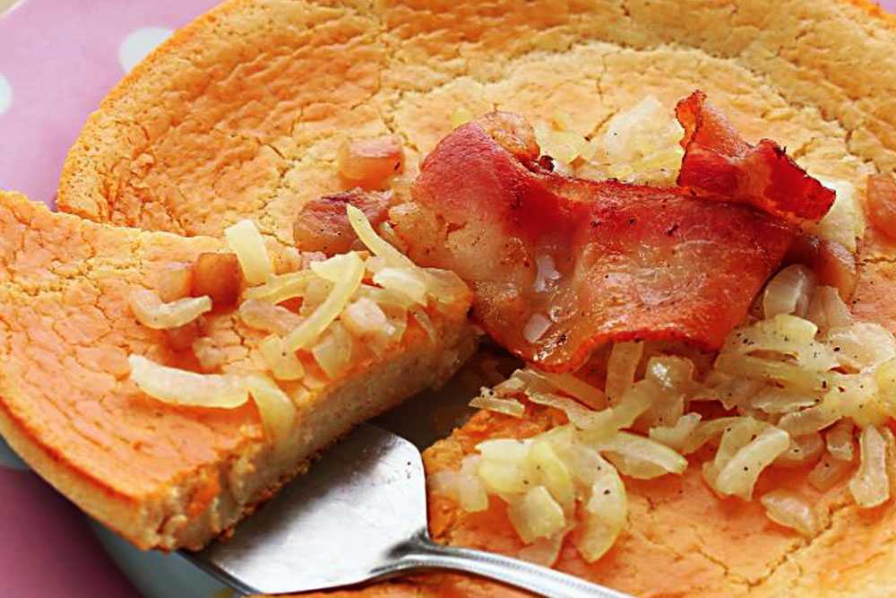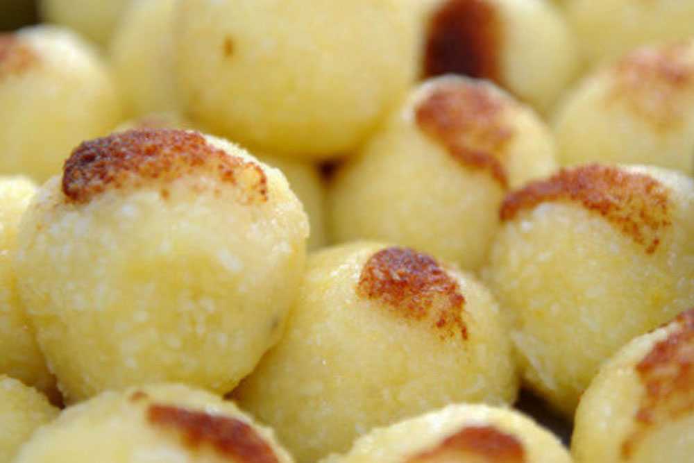 В стандартный состав картофельного теста частенько добавляют колбаску или ветчину. Это уже будет полноценный обед.