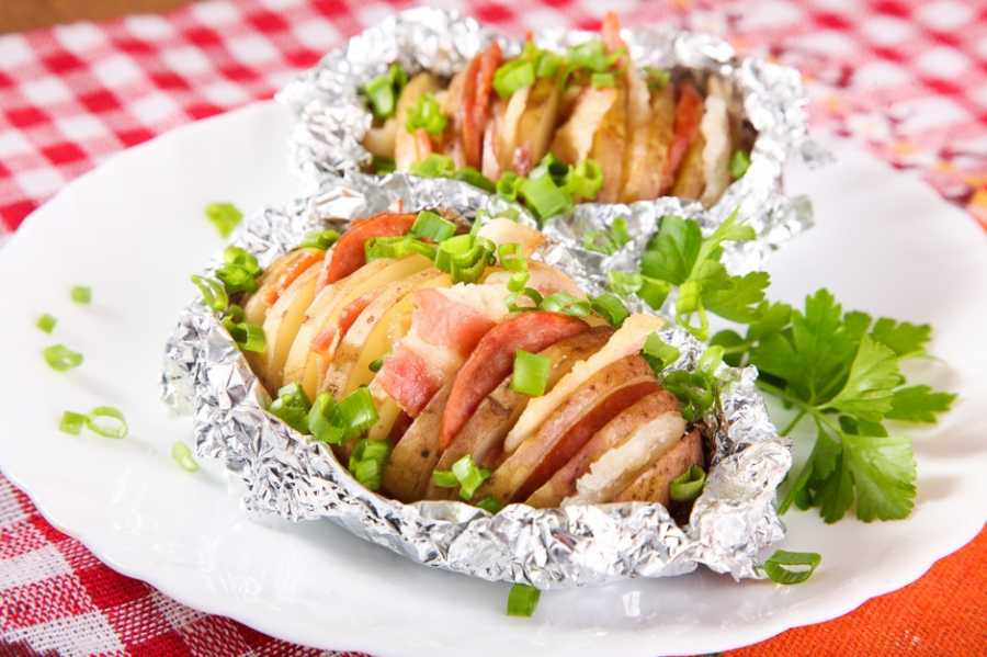 Но для небольшой порции такого блюда будет трудно найти подходящую форму. В этом случае на выручку придет обычная фольга. В ней можно приготовить картошку с любой начинкой: бекон, сыр, сало, грибы, ветчина, колбаса или, как в данном рецепте, копченая куриная грудка.