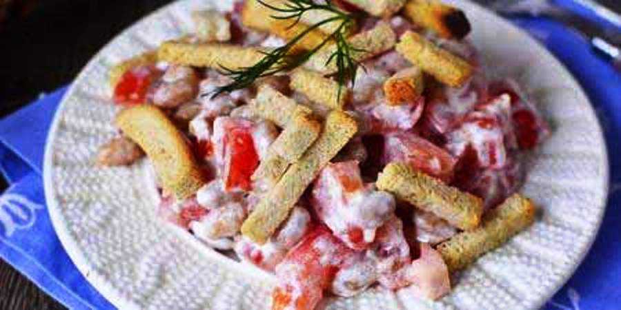 - Смешать все ингредиенты, посолить и заправить майонезом;