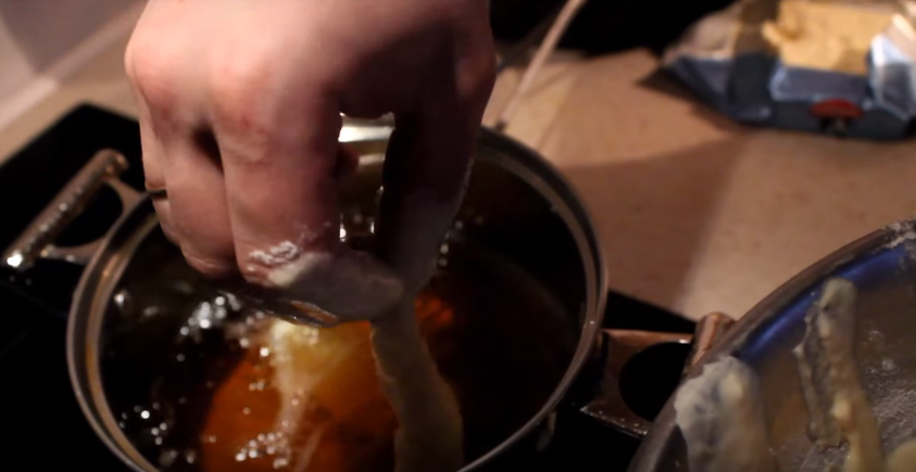 - Кляр для куриных грудок готовится классическим способом, на основе молока, яиц, пшеничной муки. Иногда часть муки в кляре заменяют картофельным крахмалом. Соль и другие специи в кляр добавляют по вкусу. По консистенции кляр напоминает негустую сметану. Перед жаркой кусочки филе нужно обвалять в муке, затем окунуть в кляр, далее обжарить на сковороде в кипящем постном масле, до золотистого цвета.