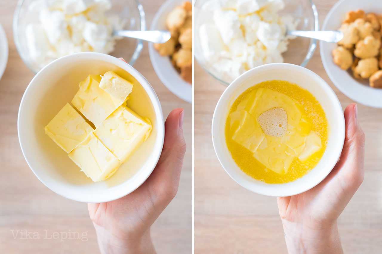 Растапливаем сливочное масло. Я это делаю в микроволновке, включая ее секунд на 10. Можно растопить и на водяной бане, просто так быстрее и без лишней возни с кастрюльками. Обычное сливочное масло можно заменить на полезное с точки зрения Аюрведы масло Гхи, здесь вы найдете его рецепт. Как минимум, оно не становится токсичным при нагревании.