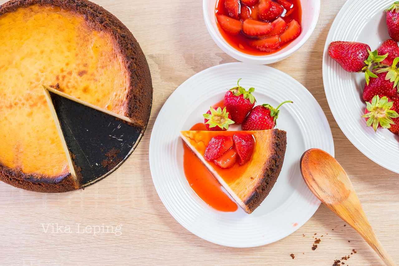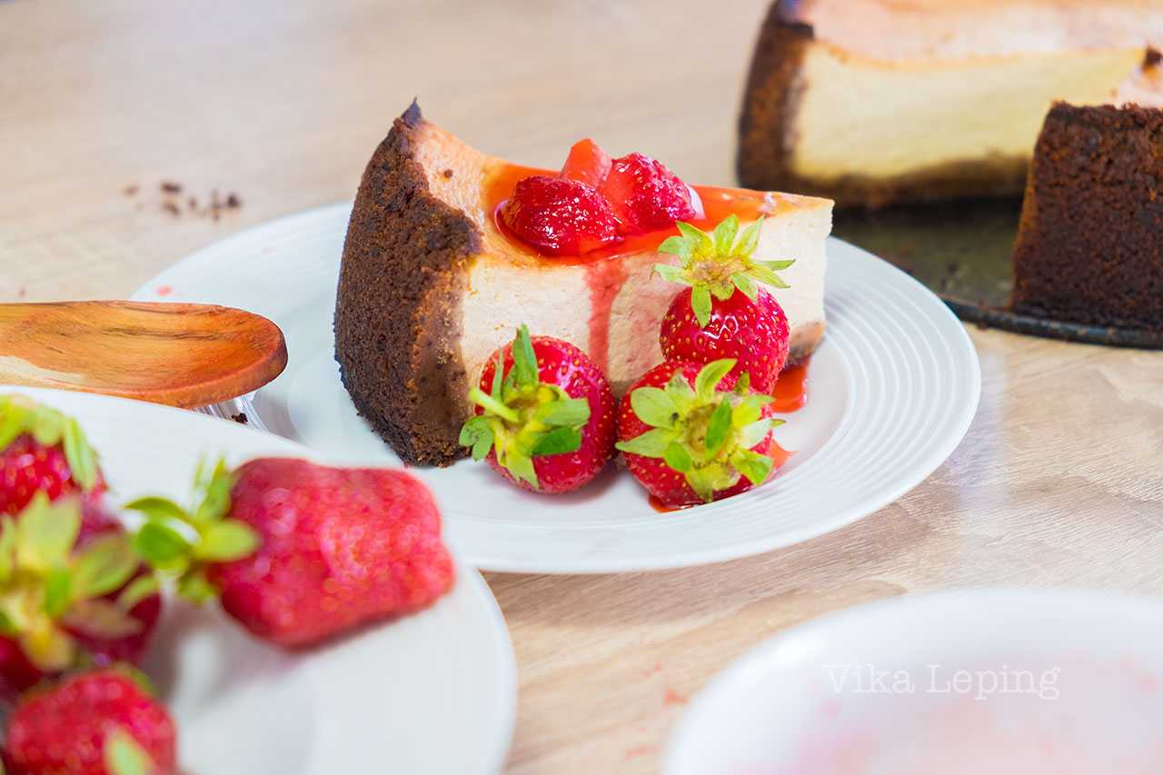 Чизкейк Нью-Йорк будет ждать вас на завтрак! На этом можно было бы и закончить, но я расскажу вам, как быстро сделать клубничный соус, потому что с ним будет намного вкуснее! Тем более, сейчас сезон клубники — грех не воспользоваться такой ситуацией.