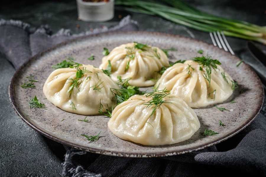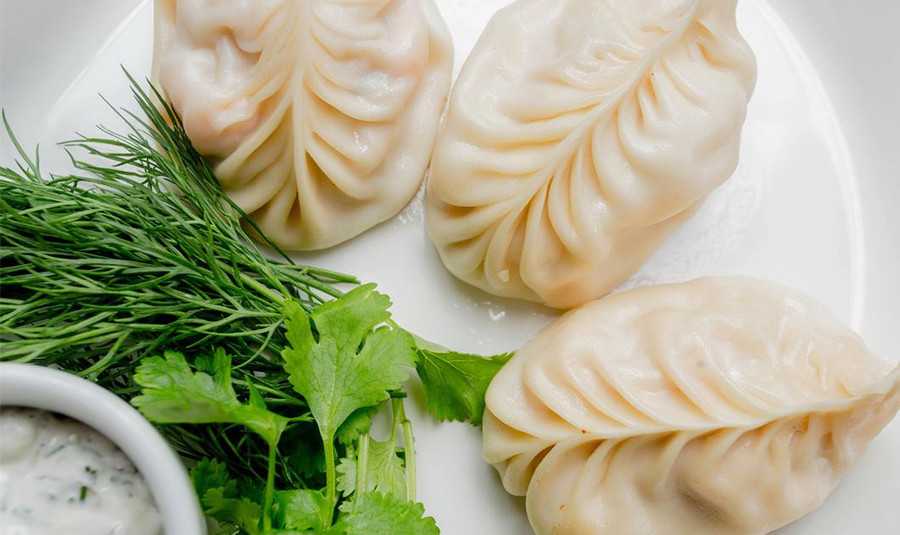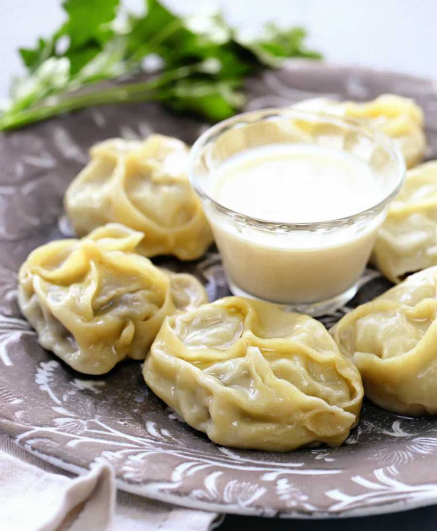 Манты также можно посыпать сушеной мятой и подавать к столу.