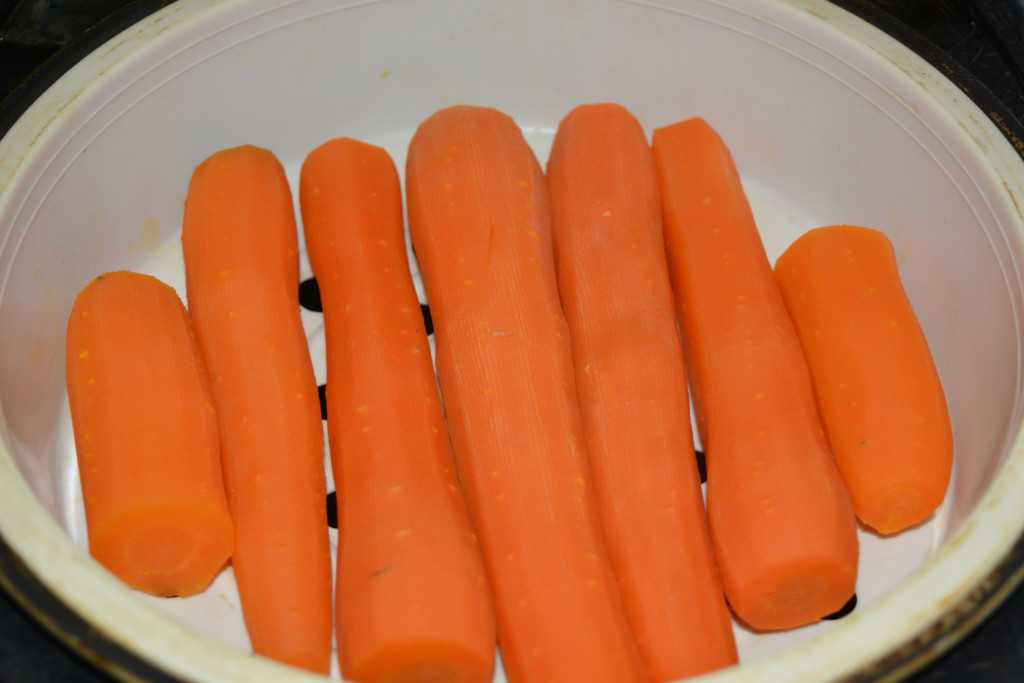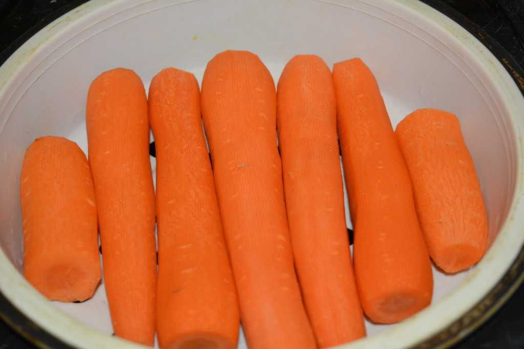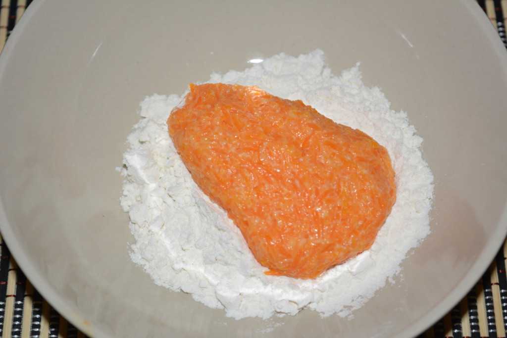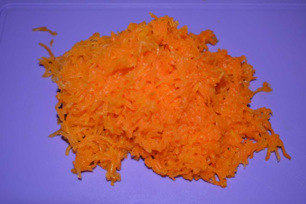 Шаг 1. Почистить и помыть морковь, залить ее горячей водой так, чтобы покрыть овощи, посолить. Накрываем крышкой и ставим морковь на огонь вариться до мягкости. Сливаем воду, остужаем морковь и прокручиваем ее на мясорубке или измельчаем в блендере.