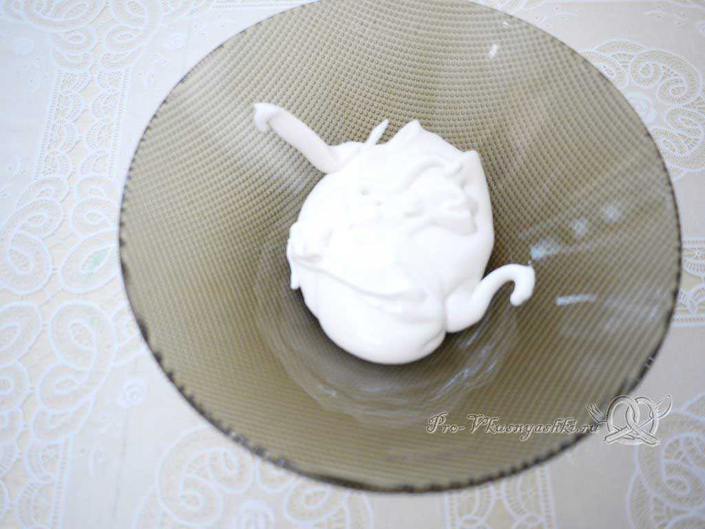 Из холодильника достаем посуду с белком, добавляем в него 1 ч.л лимонного сока (или лимонной кислоты на кончике ножа). Взбиваем содержимое миски с помощью миксера до пышности, постепенно увеличивая скорость вращения венчиков.