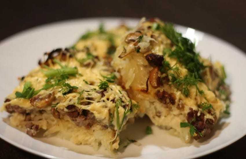 Гнезда с фаршем и луком в духовке