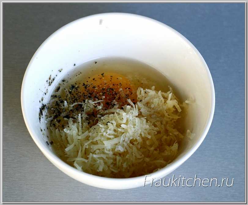 - В отдельной миске взболтать желтки с оставшимся сыром, солью и перцем.