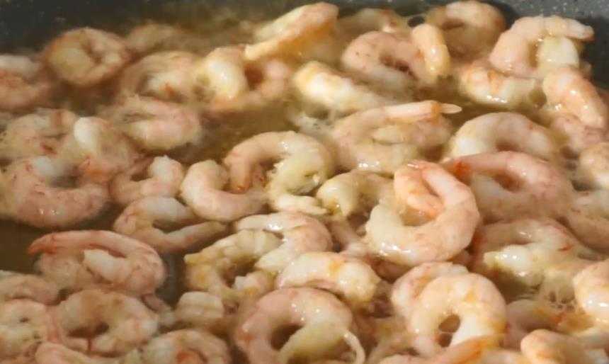 Для приготовления этого рецепта берите крупные тигровые или королевские креветки. Лучше, чтобы они не были предварительно отварены. Так вы получите больше вкуса и аромата морепродуктов в готовом блюде.